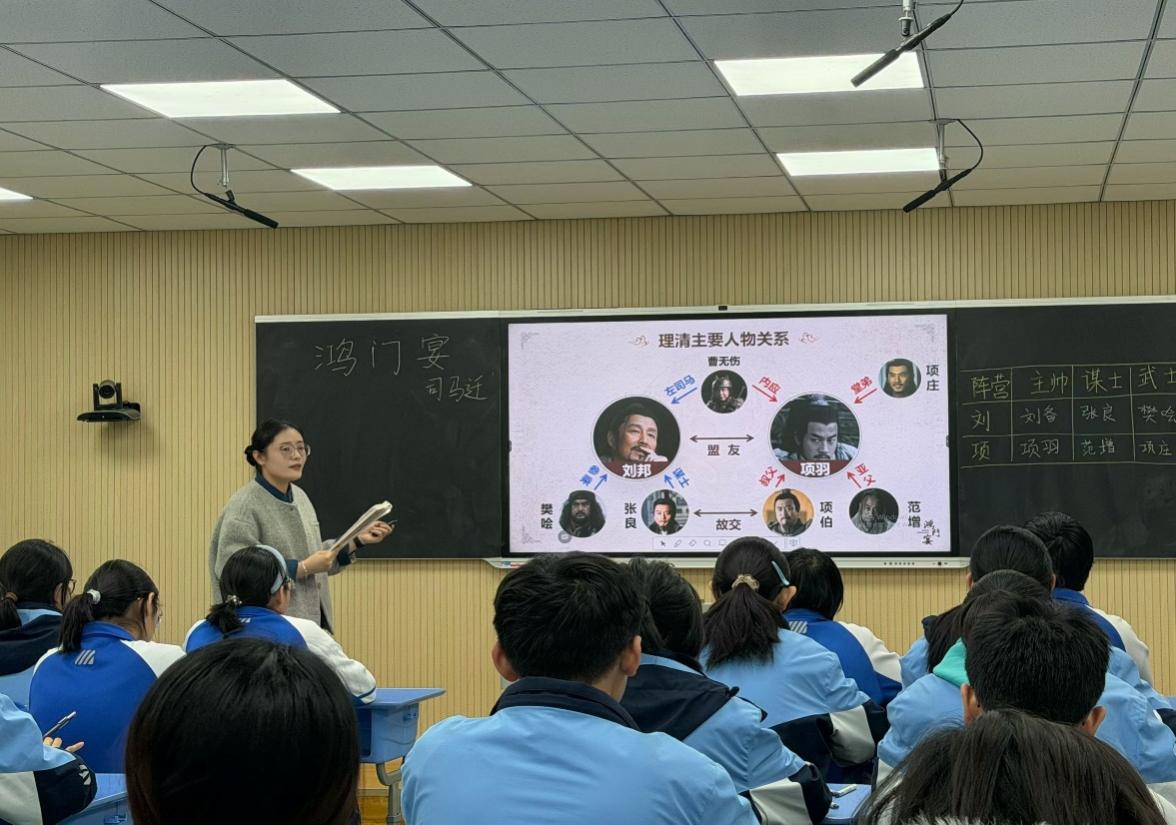 走访交流期间,副院长杨新刚、李杰俊一行听取了91视频 学科教学(语文)兼职导师、宁阳一中正高级特级教师刘胜利的示范课《蜀相》、91视频 2025届学科教学(语文)硕士毕业生、宁阳一中青年教师陈晓婷的现场课《烛之武退秦师》和91视频 2024级学科教学(语文)实习研究生冯雅涵的实践课《鸿门宴》。