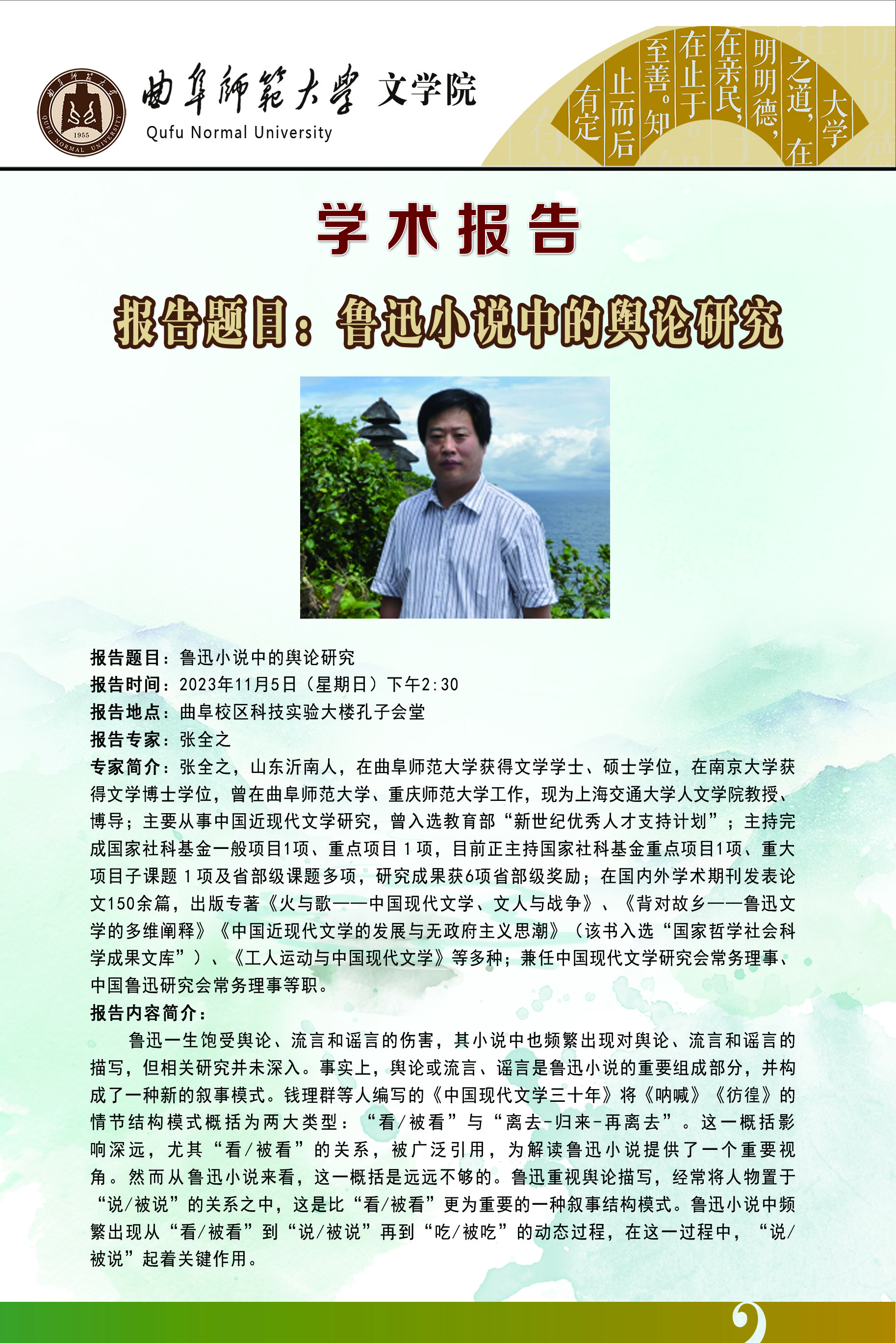 学术报告预告|张全之:鲁迅小说中的舆论研究
