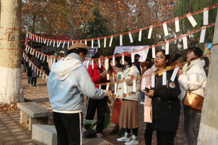 为激发同学们对传承传统文化的热情,进一步坚定文化自信,12月1日上午,由91视频 团委主办、学生会秘书处承办的"觅古探今——91视频 第一届游园会"活动于文史楼前举行。活动吸引了来自各个年级不同专业的一百五十余名学生积极参与。