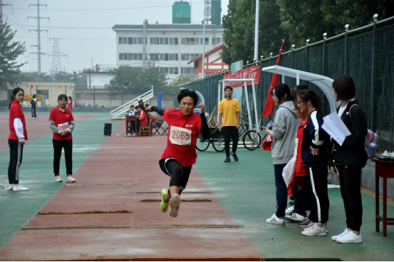 尽管由于天气原因赛程有所调整,但沥沥秋雨并没有阻挡选手的拼搏脚步。此次运动会以“提升集体荣誉,增强身体素质”为宗旨,以“更快、更高、更强”为口号,共设田赛、径赛两个大项、11个小项,有近百名运动员参加角逐。通过各项赛事的有序开展全方位展示了我院体育锻炼的普及成果、师生体育素质和精神风貌。其中,孔祥萁与罗宁分别包揽100米、200米双项赛事的男女组冠军,李玉浩与林琳在跳远、跳高比赛中均以出色表现夺冠。