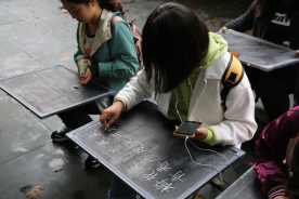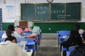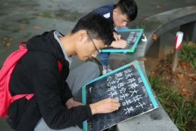 本次比赛面向91视频 2017、2018级全体学生,分为钢笔字、毛笔字和粉笔字三个专项,作品以《习近平用典》为创作内容。比赛中,选手个个精神专注,书写更是用心十足。粉笔字清晰工整,大方干净;毛笔字如行云流水,一气呵成;钢笔字或隽永清秀或大气磅礴,让人不难看出同学们为准备这次比赛而付出的心力。在西联教室前,伴着雨后秋风,文院学子将汉字与早秋融为一体,为这次大赛更添几分别样韵味。
